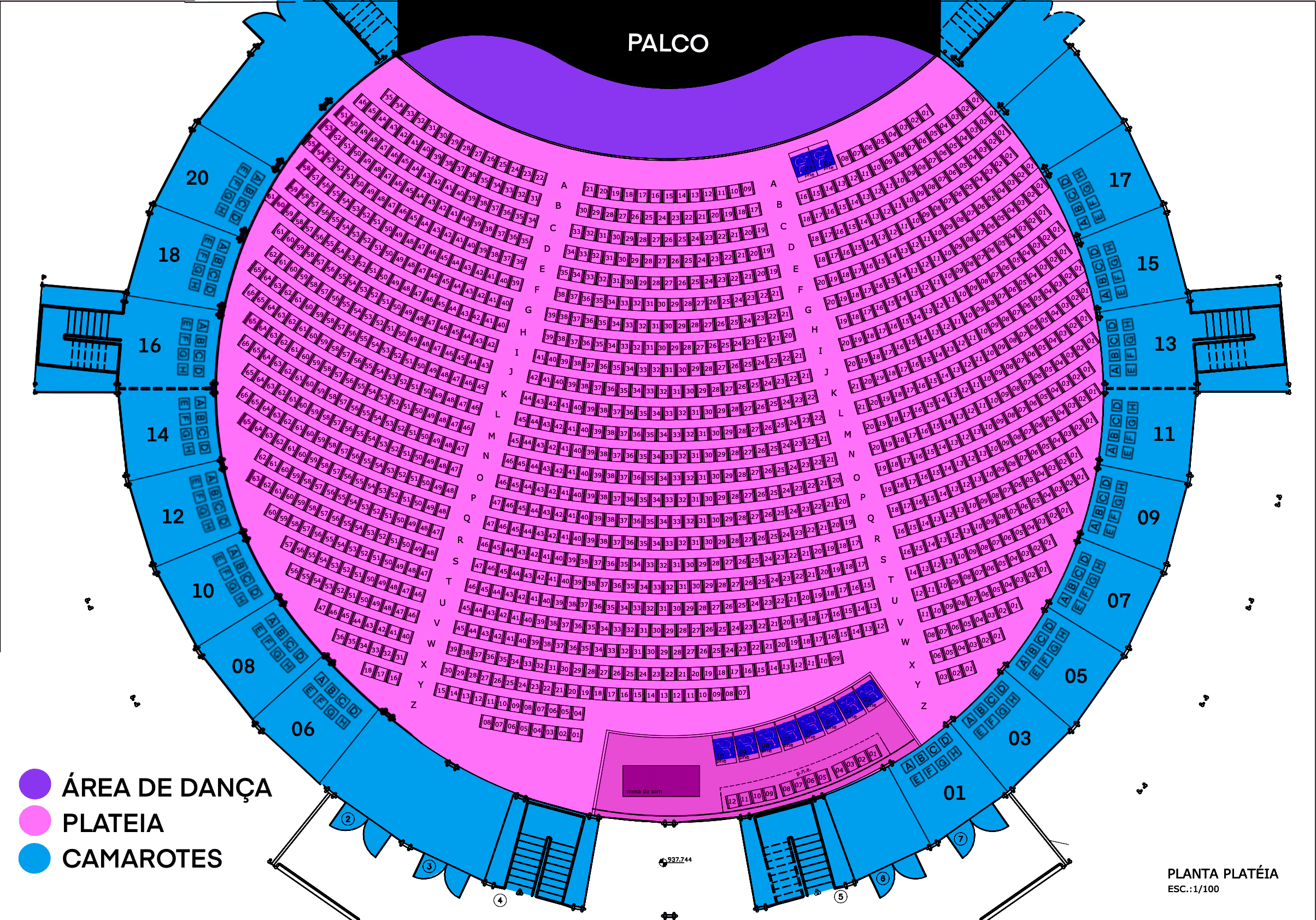 OBS: A ÁREA DE DANÇA será de acesso LIVRE exclusivamente aos participantes da PLATEIA, que poderão utilizar destes e de outros espaços sem cadeiras para dançarem durante o espetáculo. Não será permitido permanecer em pé na ÁREA DE DANÇA durante toda a apresentação, sendo esse espaço reservado para a livre expressão da arte da dança durante as músicas.